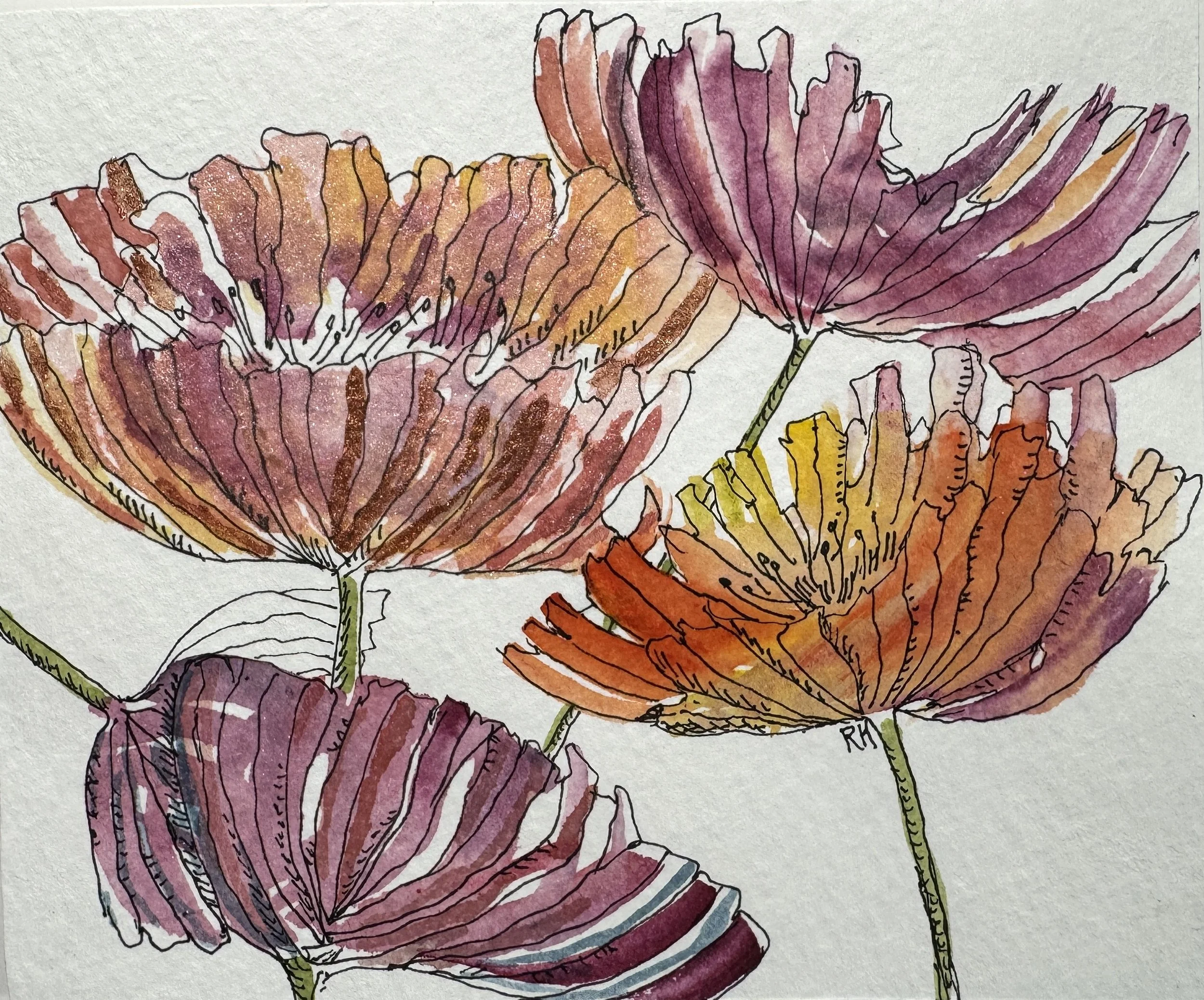 Footer image: Hollyhocks, 12”x12” Acrylic on panel. Available.